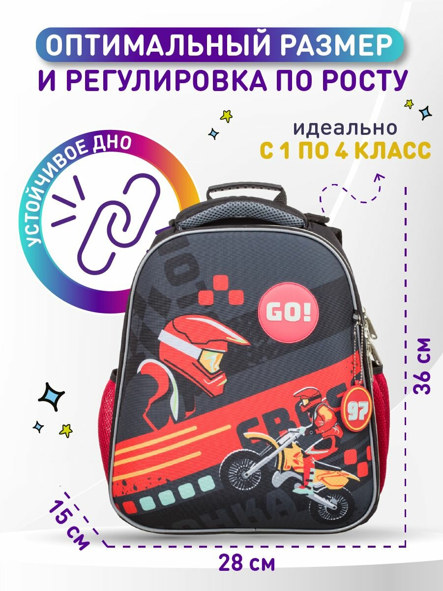 Купить Ранец школьный Комус Класс Basic Motocross, ортопедический, 2 отделения, 4 кармана с доставкой по всей России.