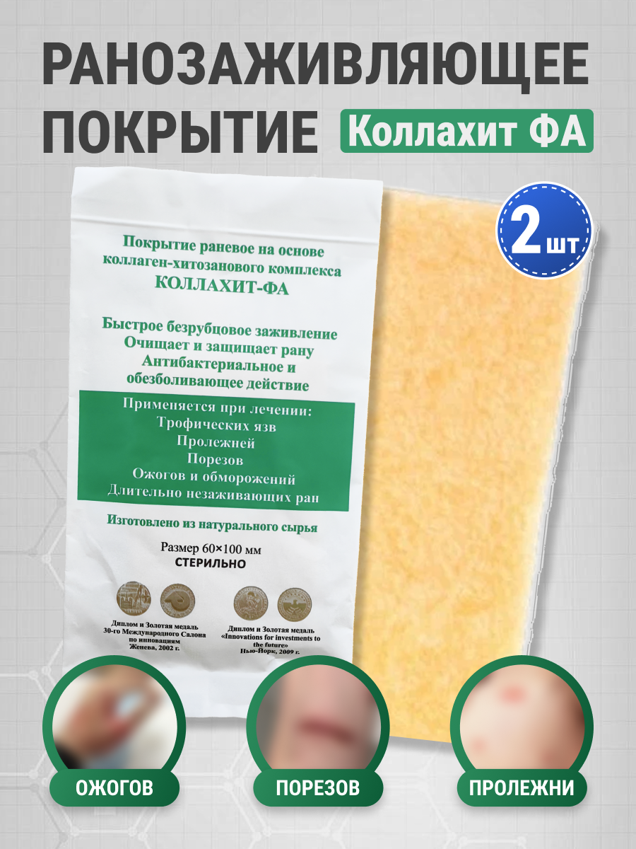 Ранозаживляющее покрытие Коллахит ФА, салфетка, пластырь от пролежней, ожогов, язв, порезов, 6х10 см, 2 шт.: сравнение цен, характеристики, фото, актуальное наличие и цены.