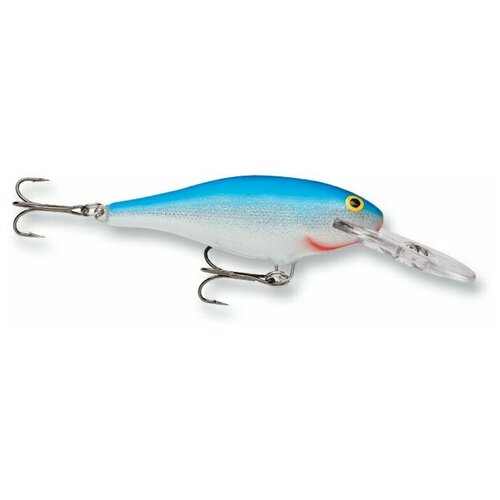 Воблер RAPALA Shad Rap 09 /B, Shad Rap имеет форму тела, напоминающую небольшую рыбку и относится к приманкам типа Shad. Выпускается воблер в размерах 50, 70, 80 и 90 миллиметров, это позволяет легко его адаптировать к кормовой базе хищников конкретного водоёма. Приманка удачна тем, что имитирует большинство мелких некрупных представителей, населяющих пресноводные водоёмы: карася, окуня, плотву. Инженеры компании RAPALA смогли добиться большого сходства с природными прототипами как по раскраске, так и по игре. Погремушка внутри тела приманки отсутствует. Существует большое разнообразие расцветок данной приманки, которые могут быть применены под различные условия водоёма и погодные условия. Shad Rap изготавливается из бальсы и покрыт несколькими слоями лака, для повышения устойчивости к внешним воздействиям. Данная приманка плавающая, имеет большую прочную лопатку, которая позволяет воблеру работать на глубинах до 4,5 метров.