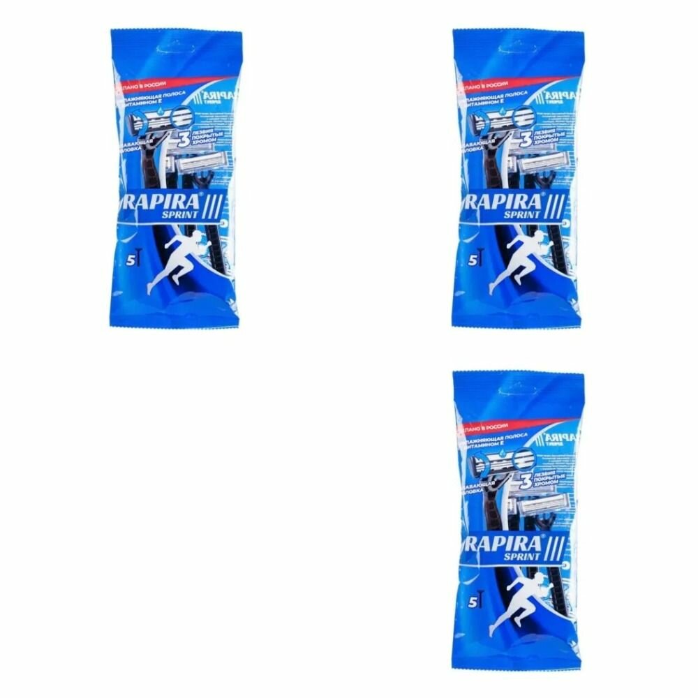 Rapira Станки для бритья одноразовые Sprint, 3 лезвия, в уп 5 шт, 3 уп: сравнение цен, характеристики, фото, актуальное наличие и цены.