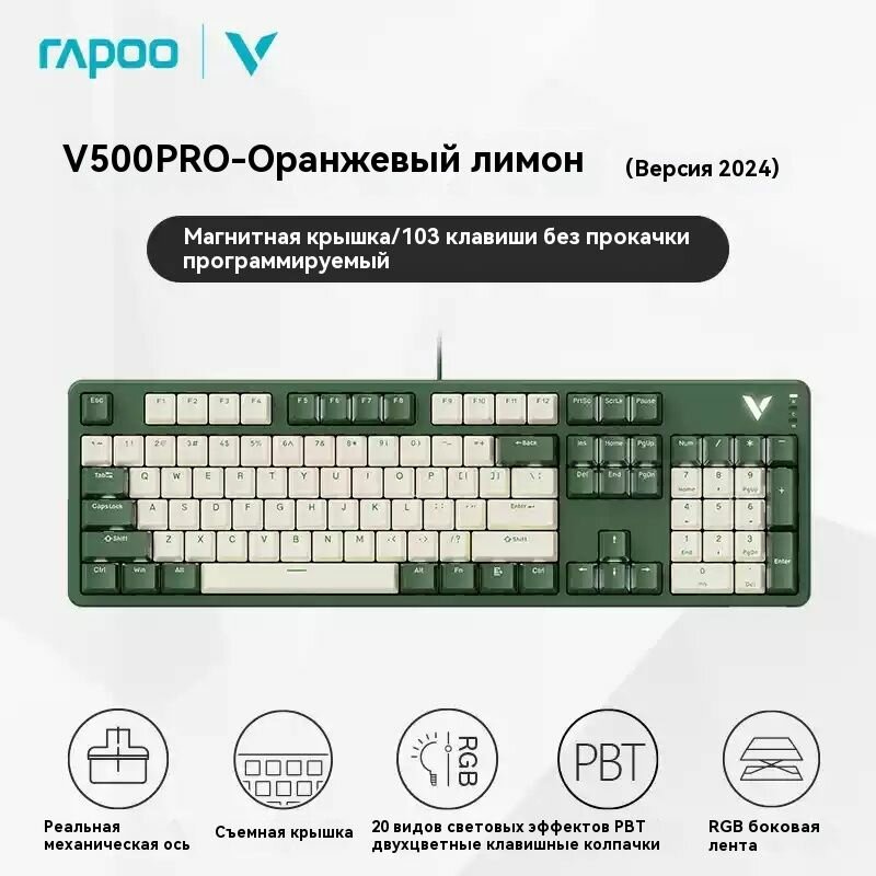 Rapoo V500PRO-Механическая клавиатура, проводная, 103 клавиши. Магнитная крышка; белый; зеленый;: сравнение цен, характеристики, фото, актуальное наличие и цены.
