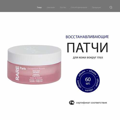 RARE PARIS Восстанавливающие патчи для области вокруг глаз Exception Rose RARE Paris, 60 шт: сравнение цен, характеристики, фото, актуальное наличие и цены.