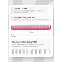 Удлиненная расческа из коллекции Y.S.Park с утолщенным и рифленным обушком. Идеальна для точной стрижки длинных волос в одну длину, слоями и градуировки. Длина 215 мм, укороченный первый "зубец". Ширина 29 мм х 22 мм. Вес 12 г. Изготавливается из специального пластика, который выдерживает температуру до 220 градусов, стойкого к химическому и физическому воздействию, но обладающего определенной гибкостью.