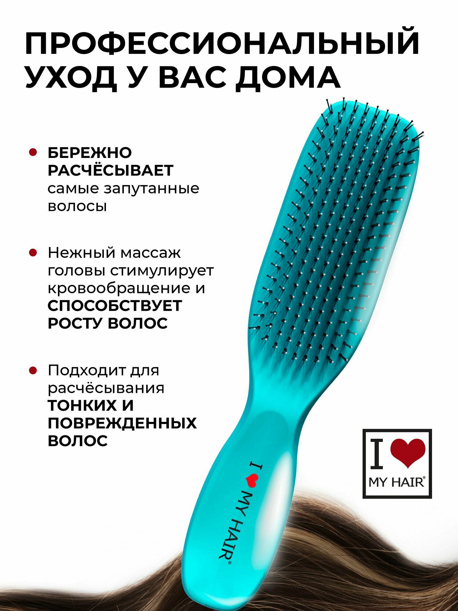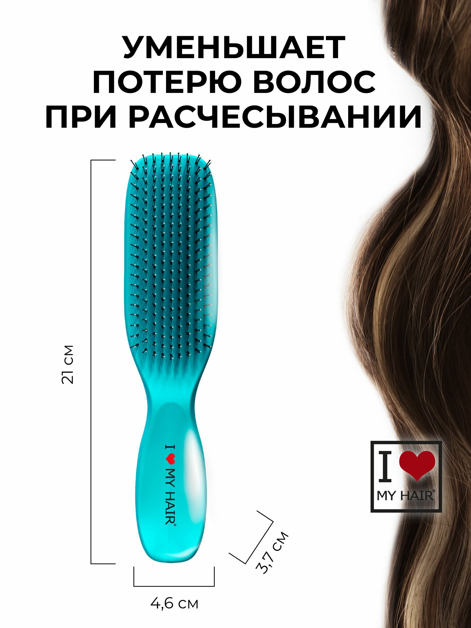 Расческа для волос с покрытием Soft Touch матовая, бирюзовая, размер M, I LOVE MY HAIR