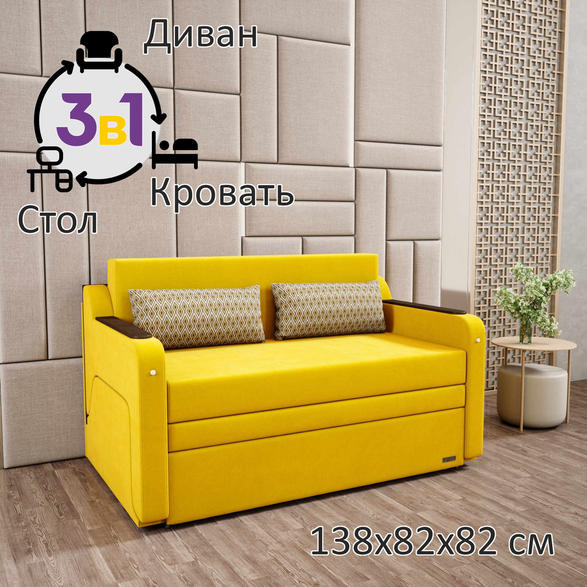 Диван раскладной GOSTIN Юнга,(спальное 120см), выкатной трансформер 3в1 для кухни, детский(темный стол), желтый.: сравнение цен, характеристики, фото, актуальное наличие и цены.