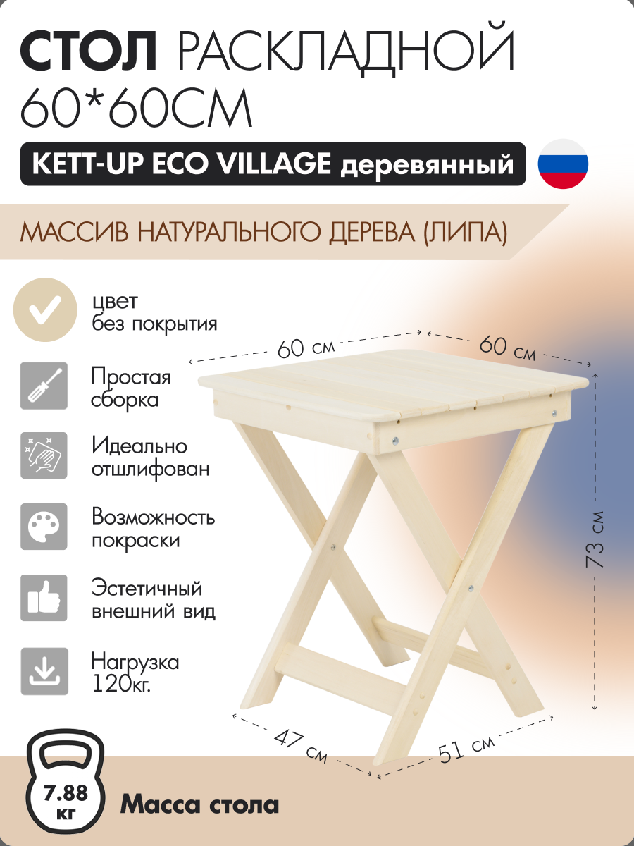 Купить Раскладной стол KETT-UP, ECO VILLAGE, массив липы, бежевый, 60×60х73 см с доставкой по всей России. Раскладной стол KETT-UP, ECO VILLAGE, массив липы, бежевый, 60×60х73 см: сравнение цен, характеристики, фото, актуальное наличие и цены.