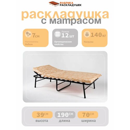 Раскладушка Фабрика-Раскладушек Гера Про 70, каркас сталь, нагрузка до 140кг, матрас в комплекте: сравнение цен, характеристики, фото, актуальное наличие и цены.