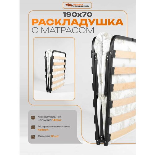 Раскладушка Фабрика-Раскладушек «ЛибраПро70», 190x70x39 см, стальная рама, черный: сравнение цен, характеристики, фото, актуальное наличие и цены.