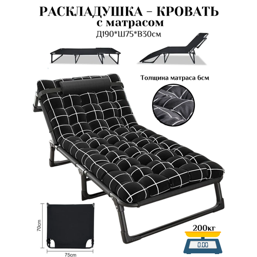 Раскладушка кровать с матрасом – это удобное и функциональное решение для отдыха и сна. Она предназначена для людей с максимальным весом до 200 кг и имеет размеры 190*75*30 см.
