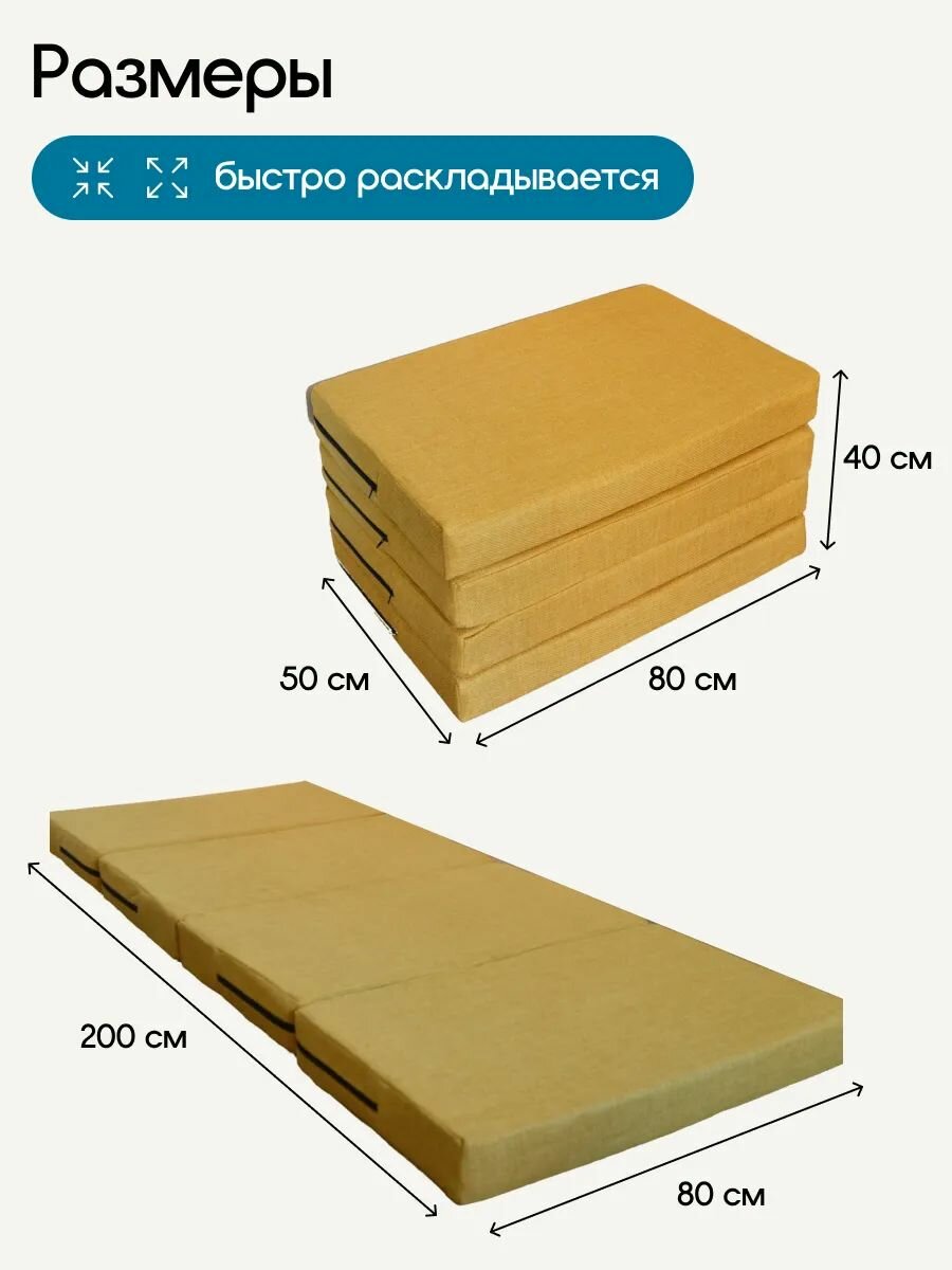 Идеальное решение для комфортного отдыха и путешествий — раскладушка - матрас. Эта взрослая раскладушка с уже встроенным матрасом обеспечивает уют и комфорт, делая ее отличным выбором для дома, дачи или гостевого размещения. Простая в использовании, она легко превращается из кресла раскладушки или бескаркасного кресла в полноценное спальное место, что делает ее универсальной и практичной. Материал матраса - рогожка и поролон средней жесткости (сертифицирован).