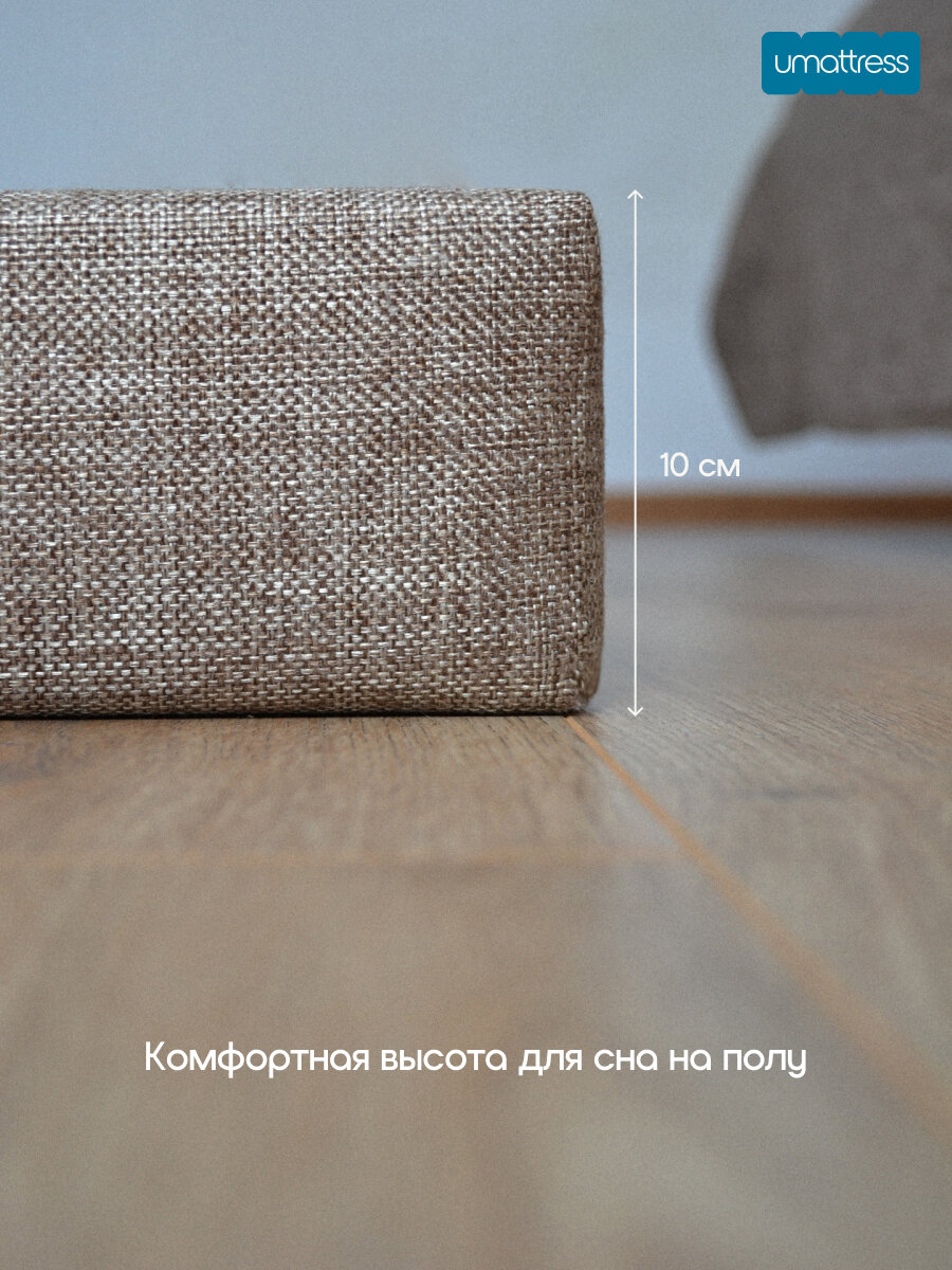 Материалы: Чехол: прочная и стильная ткань мебельная рогожка. Наполнитель: поролон повышенной жесткости для надежной поддержки тела и сохранения формы.