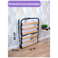 - компактные размеры в сложенном состоянии - уместится даже под кроватью; - прочное деревянное основание - выдержит до 120 кг - мягкий экологичный матрас 70 мм - залог комфортного сна; - легкий вес: 8,5 кг - можно без труда перемещать кровать по комнате; - безопасный и простой механизм разложения - справится любой человек.