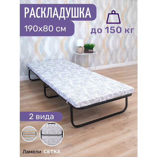 Раскладушка кровать "МИЛЕНА" - универсальная, компактная и прочная модель раскладной кровати. Усиленное основание кровати "МИЛЕНА" - металлическая панцирная сетка. Спальное место 190*80 см.