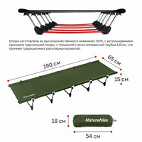 Раскладушка Naturehike XJC05, 190х65х15 см, до150 кг, темно-зеленая