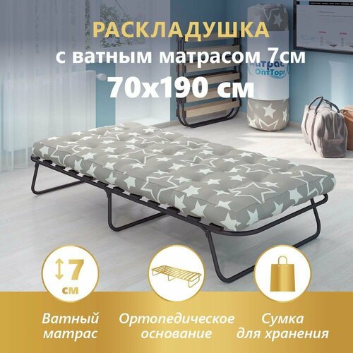 Раскладушка Практик с ватным матрасом ПЭ 7см + сумка переноска для хранения, ортопедическое основание на деревянных ламелях(14шт), спальное место 70х190см: сравнение цен, характеристики, фото, актуальное наличие и цены.