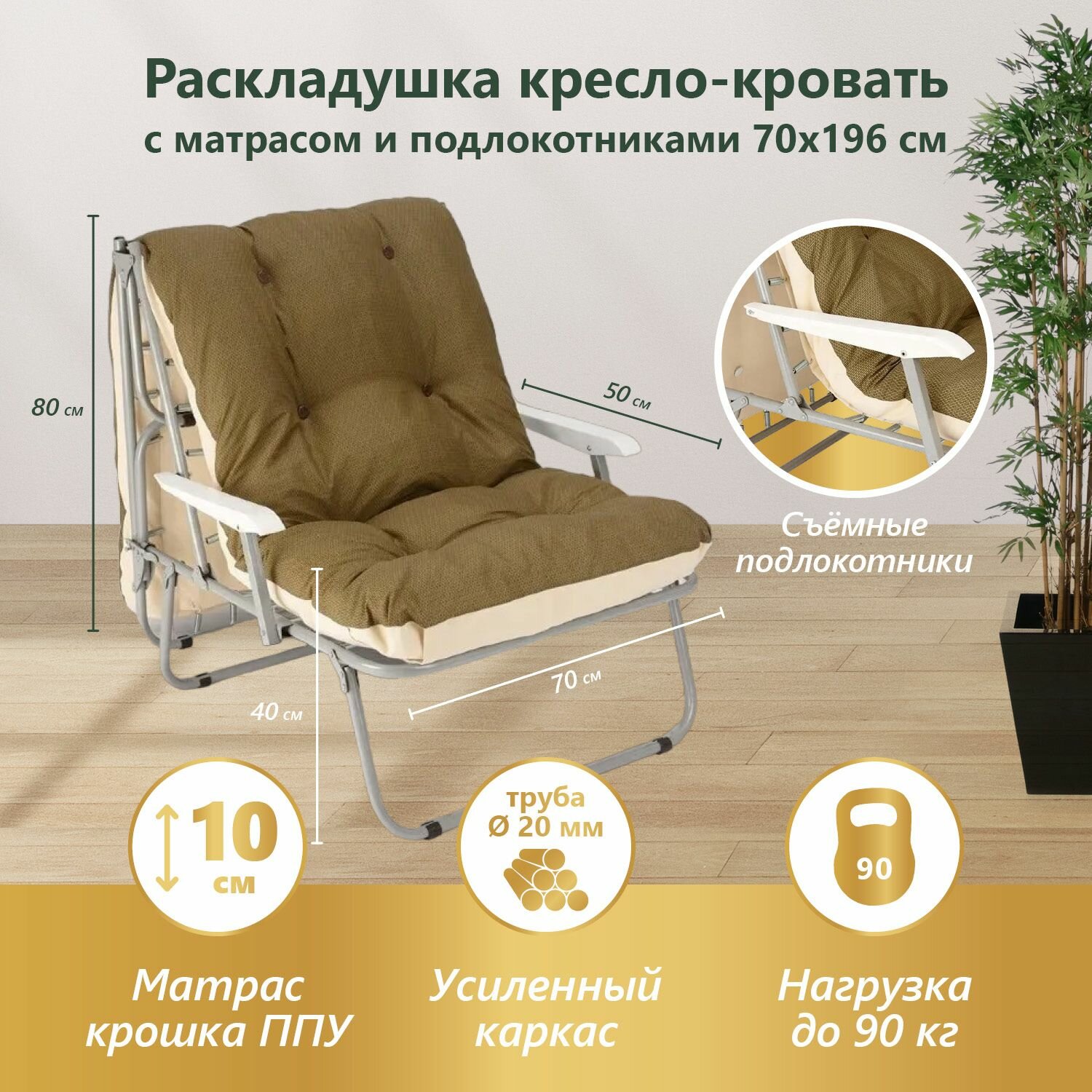 Раскладушка Селла-3, кресло — кровать раскладное с подлокотниками, матрас 10 см(набивка поролоновая крошка), зафиксирован к каркасу с помощью пружин, спальное место 70х196 см: сравнение цен, характеристики, фото, актуальное наличие и цены.