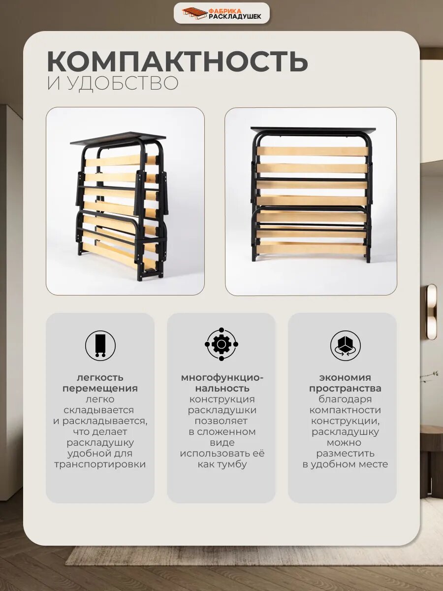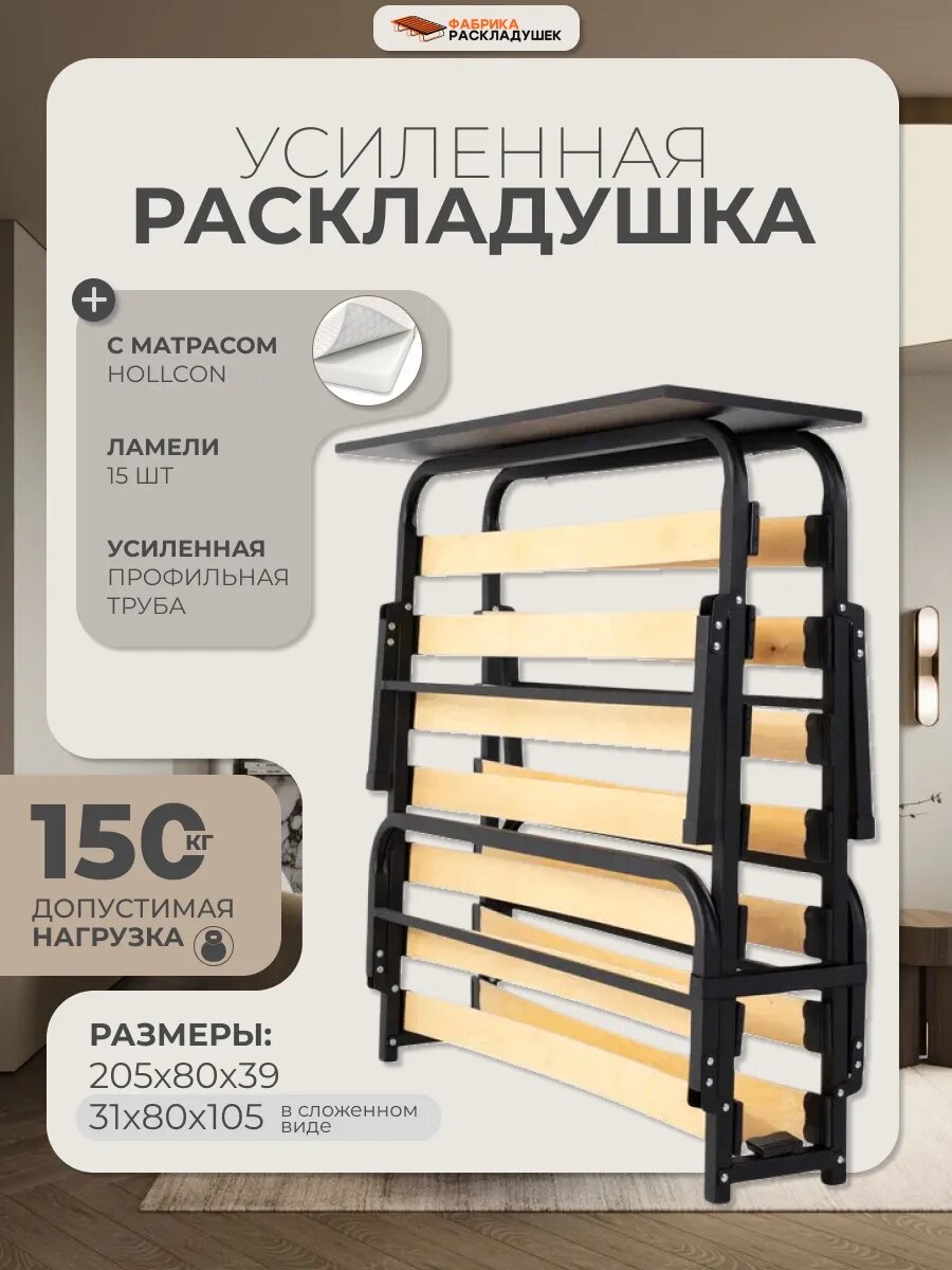 Раскладушка-тумба «ЛюксПро», с матрасом, сталь, черное матовое покрытие, 205 см x 80 см: сравнение цен, характеристики, фото, актуальное наличие и цены.