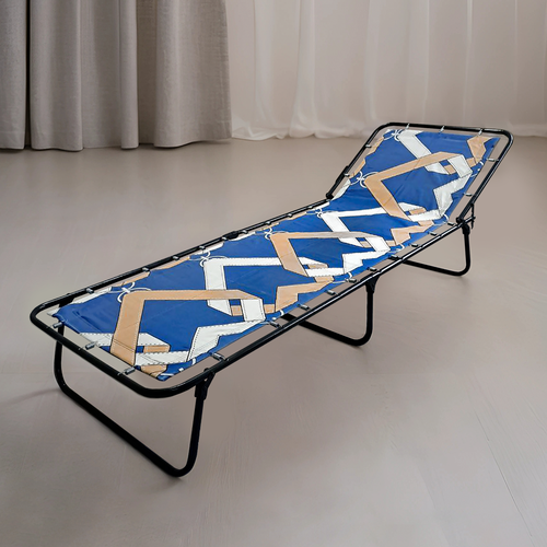 Складная односпальная обычная раскладушка кровать без матраса для взрослых и детей всегда выручит во время сна. Прекрасный гостевой комнатный вариант временного размещения гостей дома в спальне, поэтому — это лучшая замена надувному матрасу. А еще отлично использовать для комфортного отдыха на даче, заменит койку, садовое и дачное кресло и походную кемпинговую раскладную мебель или гамак в туристическом походе. На рыболовную простую кровать-раскладушку удобно прилечь во время зимней рыбалки или охоты, а на летний период послужит вместо шезлонга и лежанки для пляжного загара на природе и пляже. Компактный размер в сложенном виде позволяет перевозить в багажнике автомобиля или хранить на балконе, если она не используется, а также разместить в палатке. Эта современная усиленная бюджетная удобная раскладушка российского производства выдержит до 90 кг распределенного веса. Регулируемый подголовник можно расположить в несколько положений для удобства. Изготовлена из стальных металлических труб, покрытых полимерной порошковой краской. Легкая по весу (5 кг), что упрощает транспортировку. Важно помнить, что по правилам эксплуатации на металлическую трубу садиться нельзя, так как она не рассчитана на вес человека и является конструктивным каркасом для полотна. Если сесть на трубу, она погнется под тяжестью любой нагрузки. Садиться следует по центру изделия, где находится средняя опора. Не рекомендуем превышать заявленный в характеристиках вес. В целях Вашей безопасности и во избежание травм, вставать ногами на полотно, прыгать и плюхаться на раскладушку или использовать ее более одного человека одновременно так же не допустимо. Неправильное использование может привести к тому, что вылетят пружины, запомните, если пружины отлетели, значит были нарушены правила эксплуатации из перечисленного списка. Все перечисленные случаи не являются дефектом. Производитель не несёт ответственности за некорректное использование.