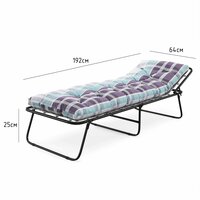 Габариты раскладушки составляют 192 см в длину, 65 см в ширину и 25 см в высоту, что делает ее самой маленькой по габаритам для взрослого человека. В сложенном виде она занимает всего 65 см в ширину, 85 см в высоту и 30 см в толщину, а ее вес составляет всего 10 кг.