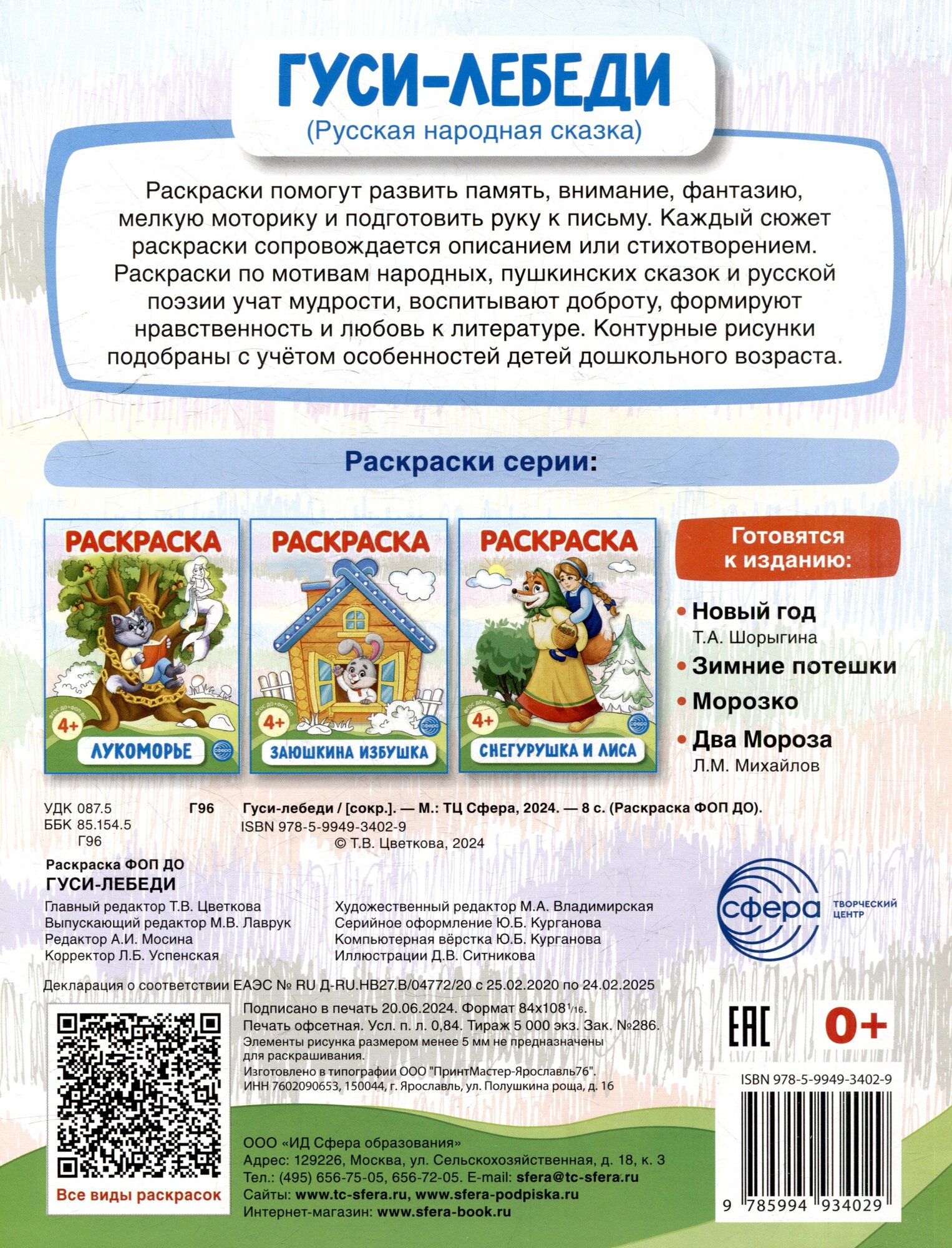 Купить Раскраска. Гуси-лебеди с доставкой по всей России. Раскраска. Гуси-лебеди: сравнение цен, характеристики, фото, актуальное наличие и цены.