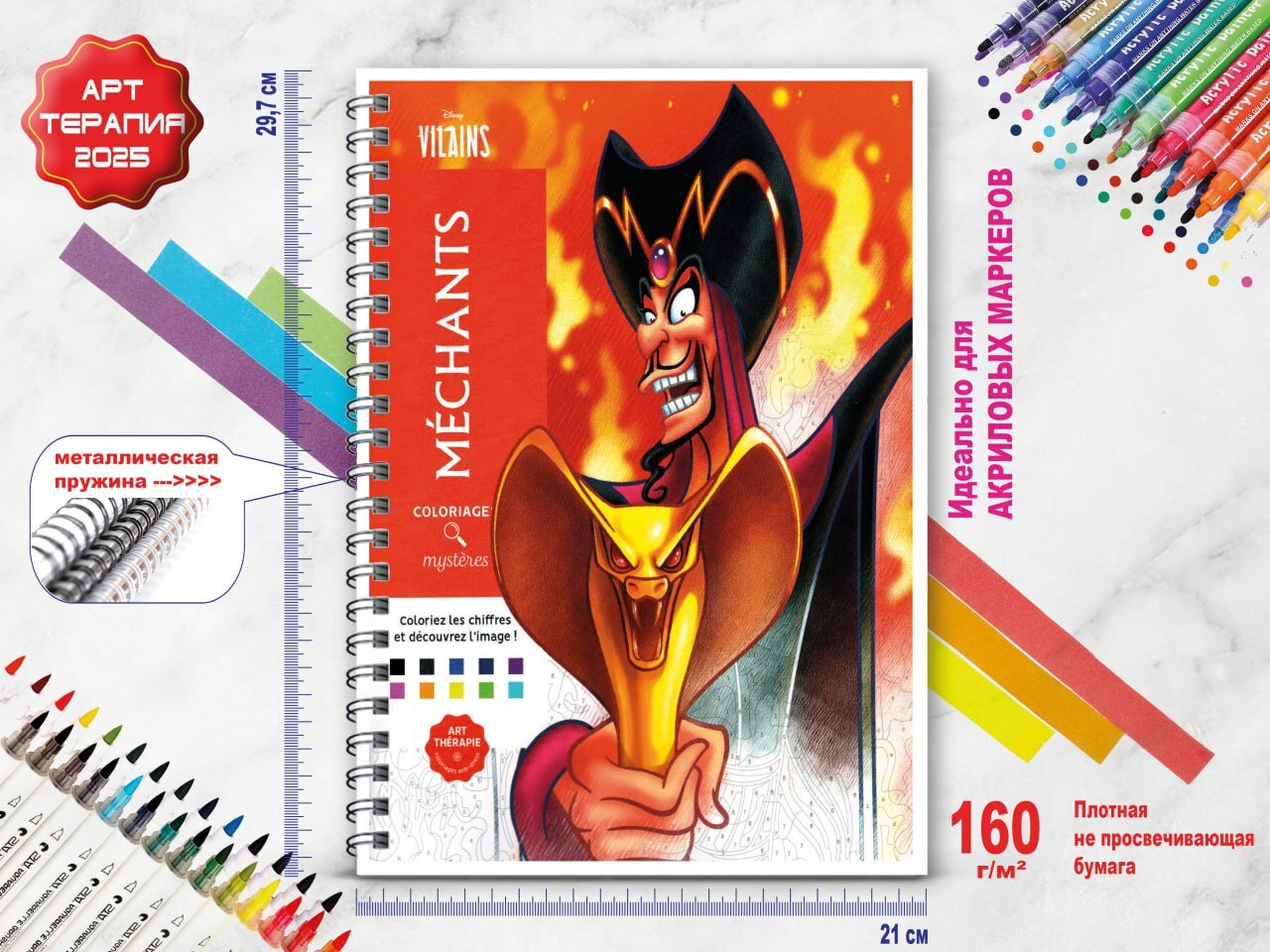 Купить Раскраска по номерам Hachette Coloriages mysteres Disney Vilains «Mechants» (Дисней, Злодеи) Антистресс с доставкой по всей России.