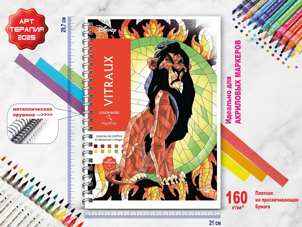 Купить Раскраска по номерам Hachette Coloriages mysteres Disney «Vitraux» (Дисней, Витражи) Антистресс с доставкой по всей России.