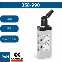 Распределитель Camozzi 358-990 имеет 5/2 лин./поз. бистабильную конструкцию, что позволяет управлять двумя линиями одновременно. Управление осуществляется с помощью прямого тумблера с фиксацией, что обеспечивает удобство и простоту использования.