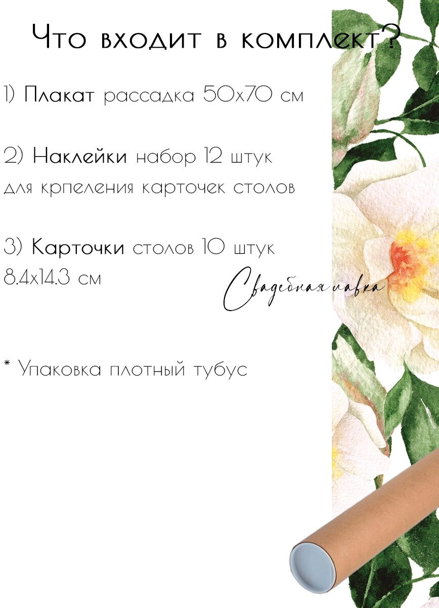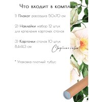 Декоративные наклейки на свадьбу 12 шт.; Карточки для схемы рассадки столов 10 шт.; Плакат свадебный рассадка 1 шт.