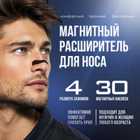 Перед вами современное устройство от храпа – расширитель для носа магнитный. Это средство от храпа подходит для мужчин и женщин, создано для того, чтобы обеспечить вам спокойный сон без раздражающих звуков и улучшить общее самочувствие. Основные преимущества.1. Эффективная магнитная конструкция. Уникальная система магнитного крепления позволяет надежно зафиксировать клипсу от храпа на носу, предотвращая его случайное падение. Это делает использование расширителя ноздрей максимально комфортным и безопасным.2. Избавьтесь от храпа навсегда. Магнит для носа Антихрап эффективно борется с проблемами храпа и обструктивным апноэ сна, создавая идеальные условия для вашего отдыха и улучшая качество жизни окружающих вас людей.3. Удобство и комфорт. Корпус клипсы от храпа в нос выполнен из мягких материалов, которые идеально адаптируются к форме носа, исключая любые неприятные ощущения при длительном использовании.4. Многоразовая эксплуатация. Устройство от храпа отличается высокой прочностью и долговечностью, что обеспечивает сохранение здоровья и экономию средств на покупку новых устройств.5. Портативность. Легкий вес и компактные размеры позволяют брать магниты на нос для дыхания анти храп с собой куда угодно, будь то поездка на работу или длительное путешествие. Теперь качественный сон доступен всегда. Сделайте свой сон идеальным вместе с магнитной вставкой для носа.