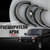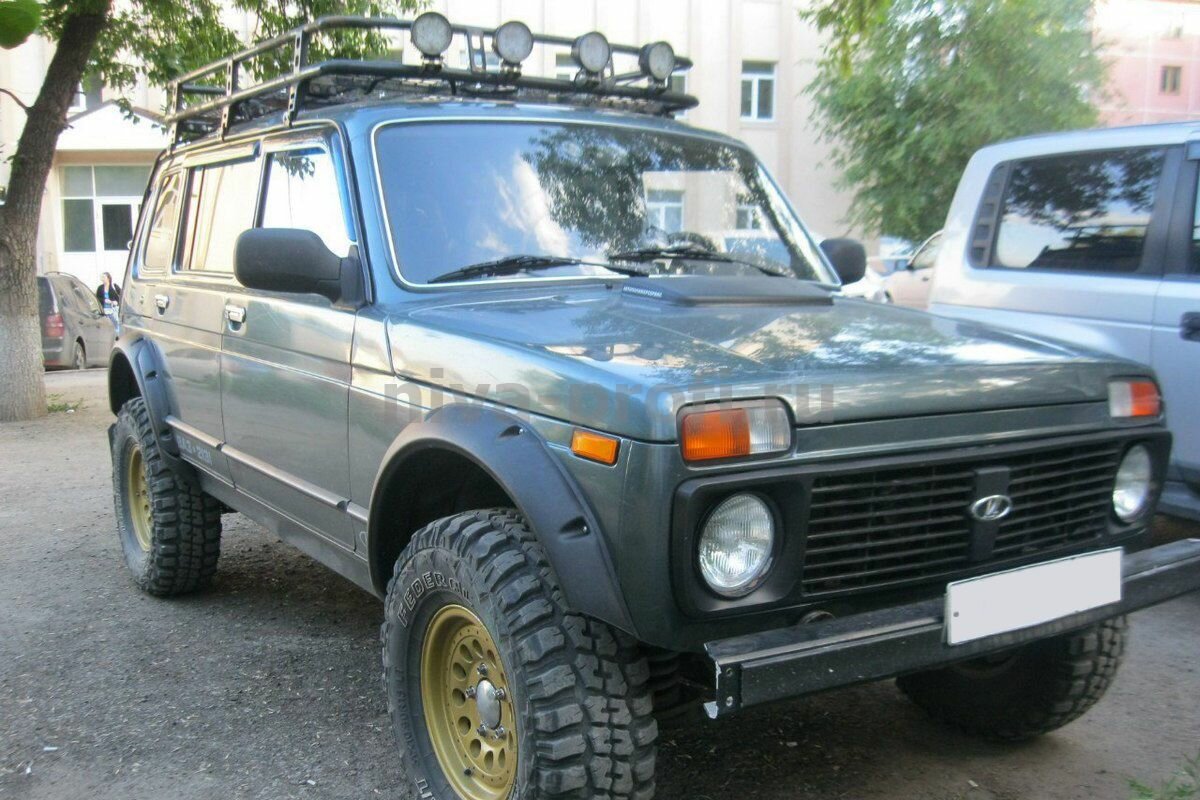 Расширители колесных арок для Lada Niva предназначены для установки на стандартные (нерезаные) колесные арки. Вылет относительно габаритов кузова: передние — 70 мм, задние — 70 мм. Материал расширителей арок — ABS пластик .