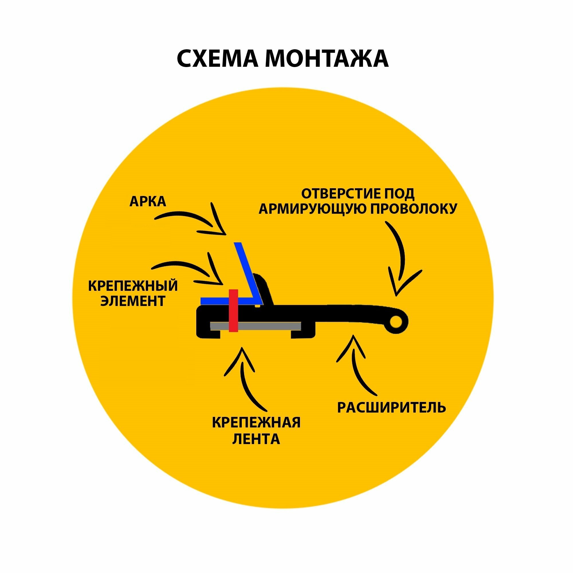 Расширители изготовлены из термоэластопласта (ТЭП), который стоек к механическим воздействиям, не дубеет на морозе и не выгорает на солнце. Расширители арок из термоэластопласта нейтральны к ГСМ и реагентам, не требуют специального ухода и легко устанавливаются.