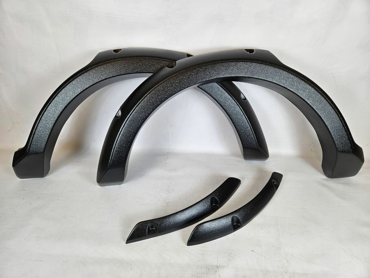 Комплект: Арки, резиновые уплотнители, метизы Накладки на арки (расширители) изготовлены из ударопрочного, неструктурированного АБС-пластика методом термо-вакуумной формовки. Изделия, полученные при помощи данной технологии, имеют ряд преимуществ перед аналогичными изделиями из других материалов:
