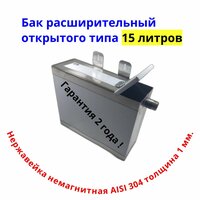 Расширительный бак 15 литров изготовлен из высококачественной немагнитной пищевой нержавеющей стали AISI 304 1.0 мм . Толщина металла 1 мм и особая форма повышают прочность изделия.