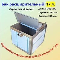 Расширительный бак 17 литров изготовлен из высококачественной немагнитной пищевой нержавеющей стали AISI 304 1.0 мм . Толщина металла 1 мм и особая форма повышают прочность изделия.