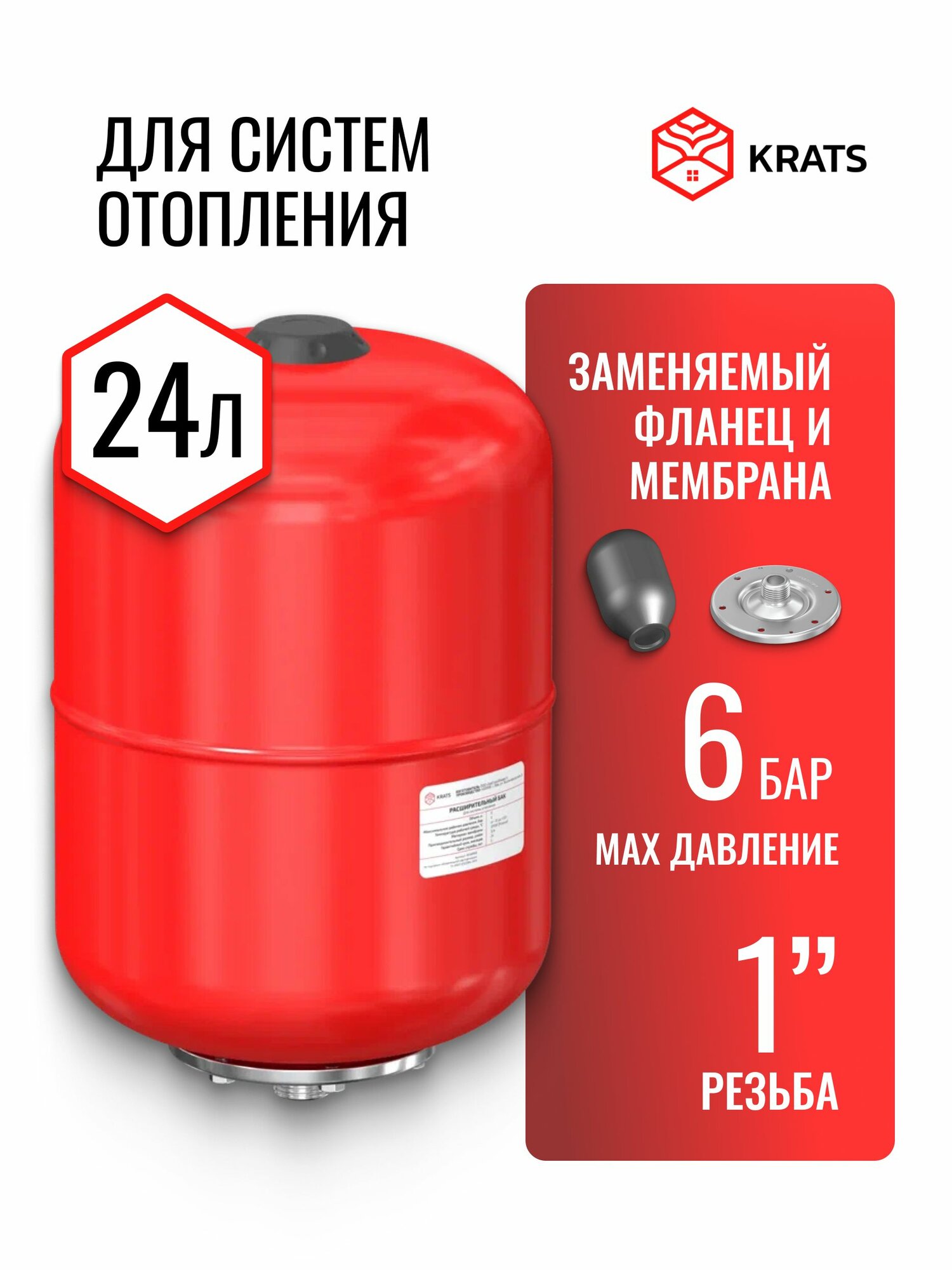 Расширительный бак KRATS для системы отопления, 24 литра, штуцер 1″ без ножек: сравнение цен, характеристики, фото, актуальное наличие и цены.