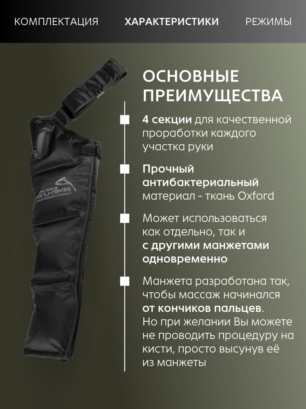 Манжета для руки от аппаратов WelbuTech Seven Liner позволяет не только производить качественный массаж, но и имеет ряд отличительных преимуществ: