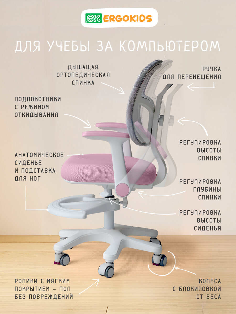Основные функции детского кресла компьютерного Ergokids Bambi Air Y-309: