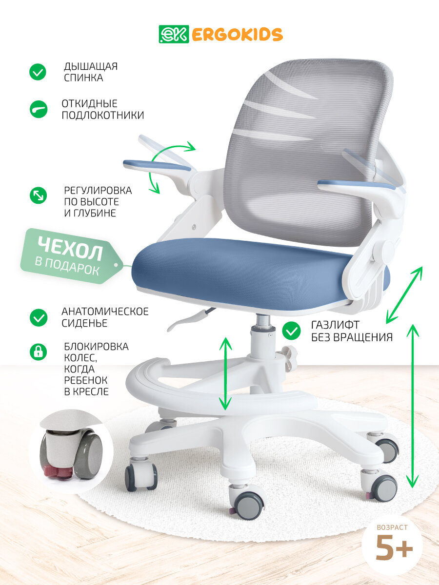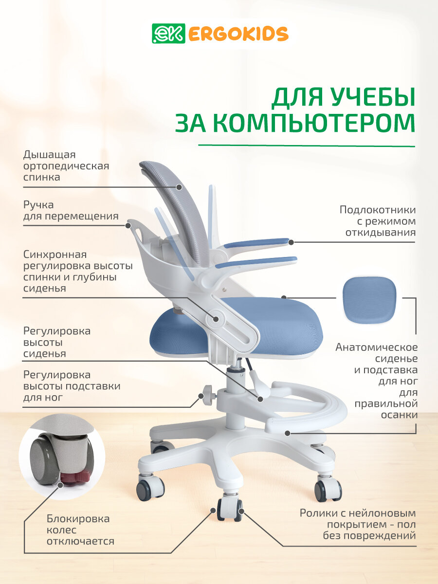 Детское кресло с подставкой Ergokids Dumbo Air отличный подарок для нового учебного года на 1 сентября, для школы и детского сада.