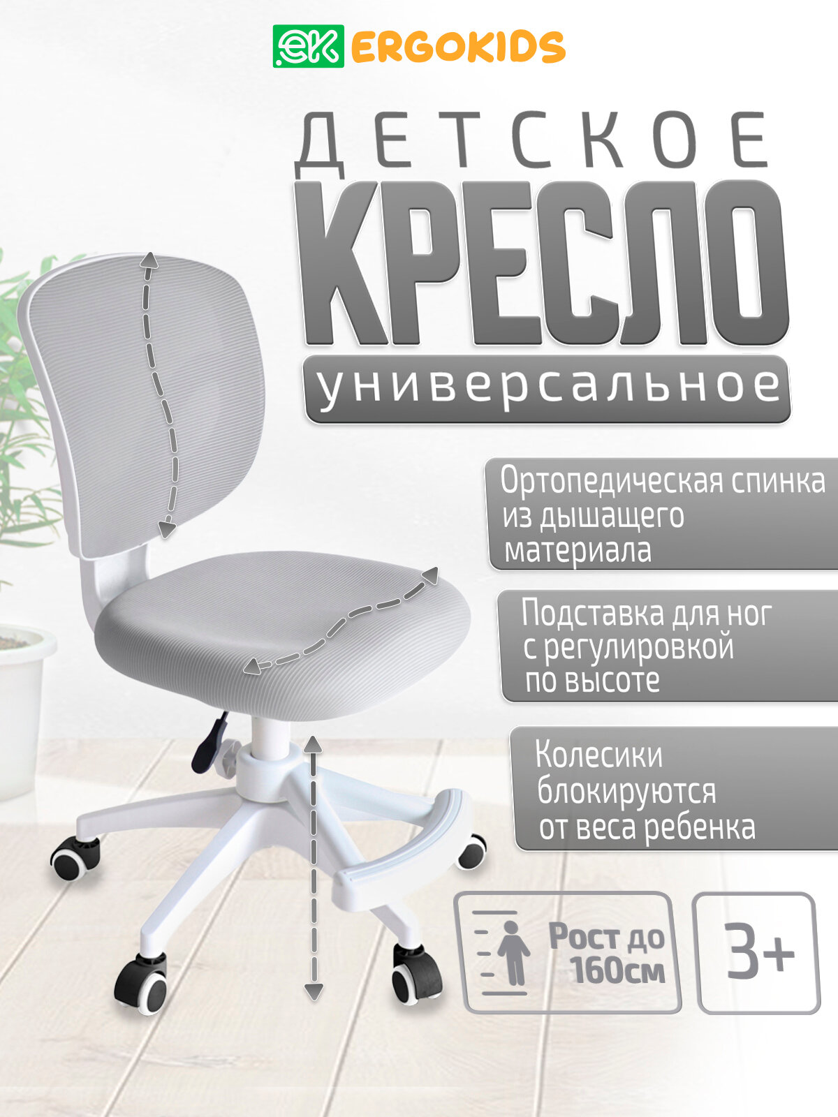 Кресло детское компьютерное для школьника ErgoKids Soft Air Lite Grey (арт. Y-240 Lite G) с регулируемой подставкой: сравнение цен, характеристики, фото, актуальное наличие и цены.