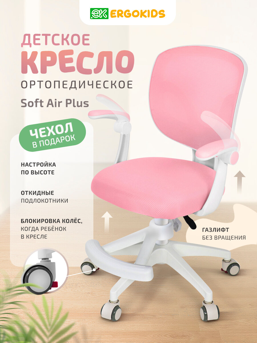 Детское компьютерное кресло с подлокотниками Ergokids Soft Air Plus (Y-240) – это ортопедическая мебель, которая заботится о здоровье спины вашего ребенка. Оно подходит для простых письменных, компьютерных столов, растущих, обычных и складных парт и столиков. Максимальная высота рабочего стола до 77 см. Подходит для детей от 3 лет дошкольного возраста и школьникам (школьницам). Максимальный рост ребенка до 160 см.