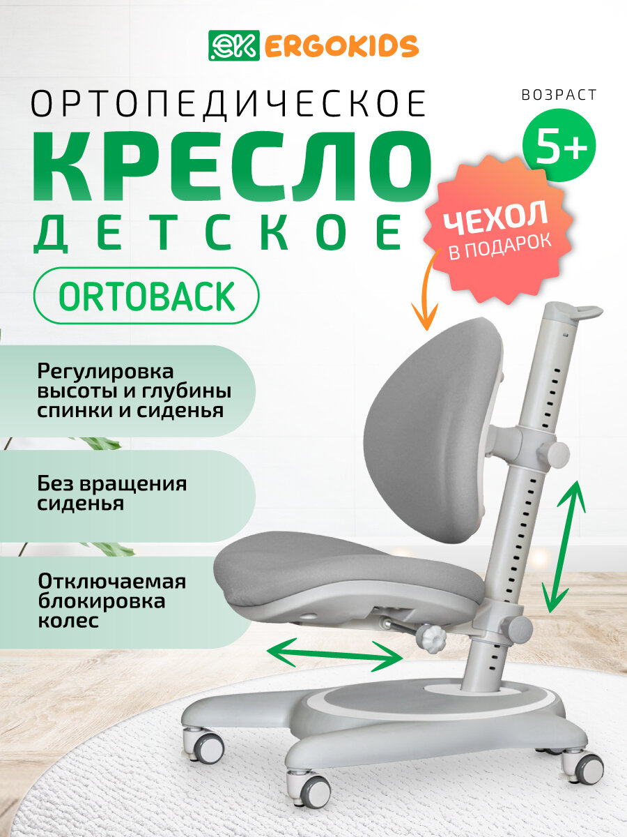 Купить Кресло детское компьютерное ортопедическое Ortoback Grey (арт. Y-508 G) для обычных и растущих парт + чехол на сиденье с доставкой по всей России.