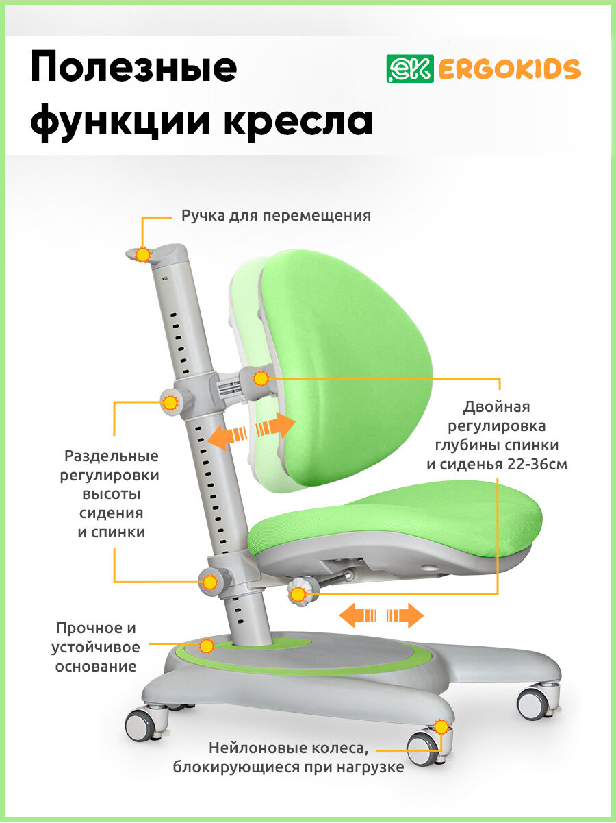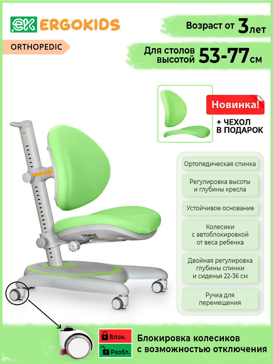Купить Кресло детское компьютерное ортопедическое Ortoback Green (арт. Y-508 KZ) для обычных и растущих парт + чехол на сиденье с доставкой по всей России.