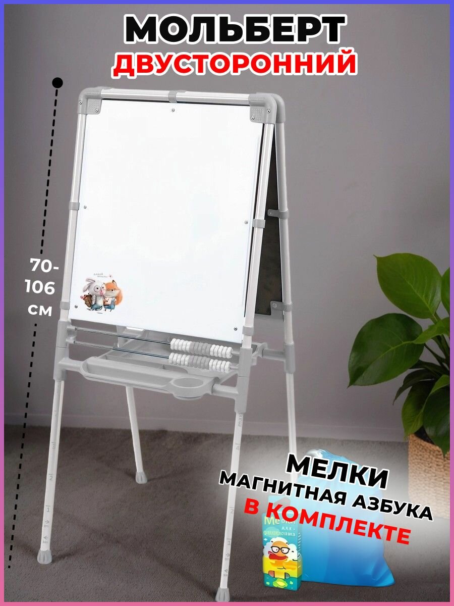 Растущий детский мольберт двусторонний Nika kids с магнитной азбукой и мелками