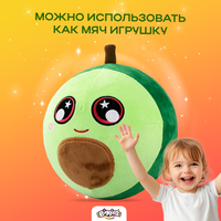 Игрушка выполнена в виде авокадо, что делает ее не просто мягкой игрушкой, но и трендовым аксессуаром. Зеленый цвет авокадо добавляет игрушке свежести и яркости.