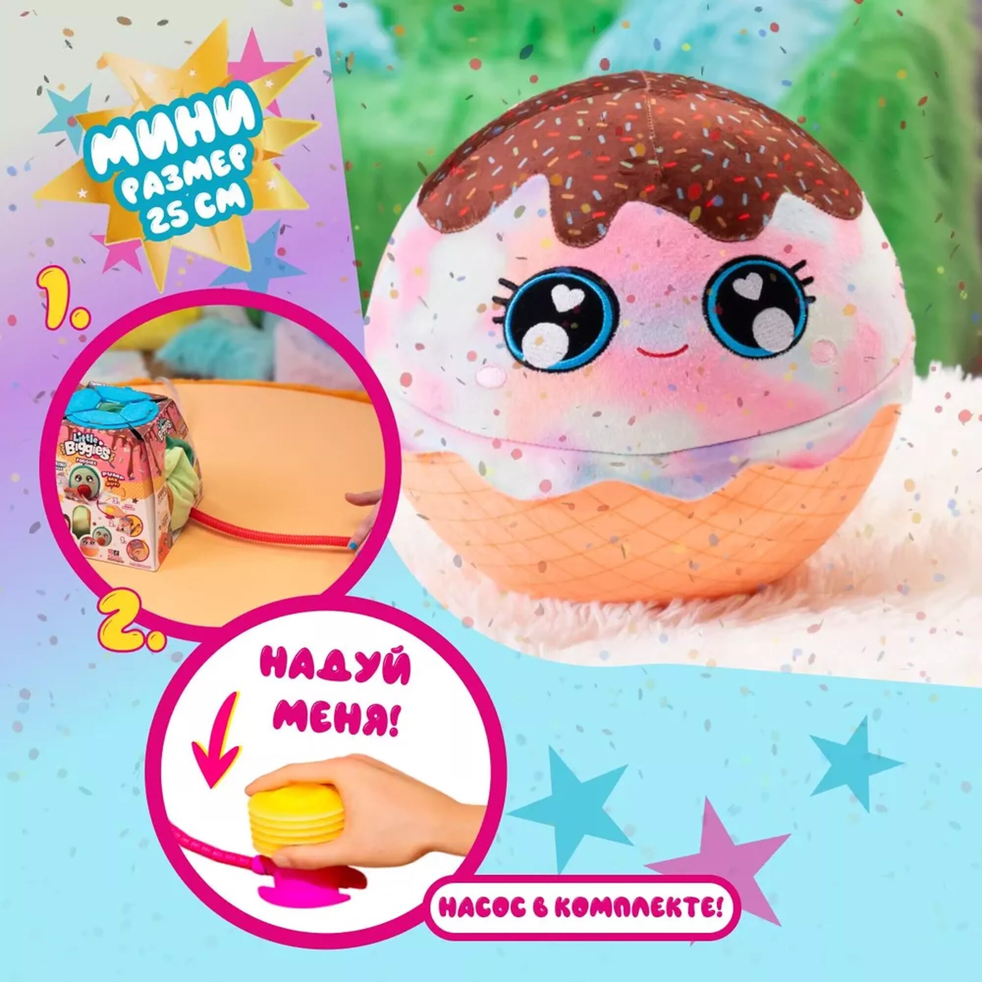 Познакомьтесь с удивительным Растущим надувным зверьком-шаром Biggies Мороженое! Эта магическая игрушка не просто оживает, но и растет прямо у вас на глазах. Благодаря специальному насосу в наборе, вы сможете превратить обычный мягкий шар в волшебное Мороженое, который исследует мир вместе с вами.