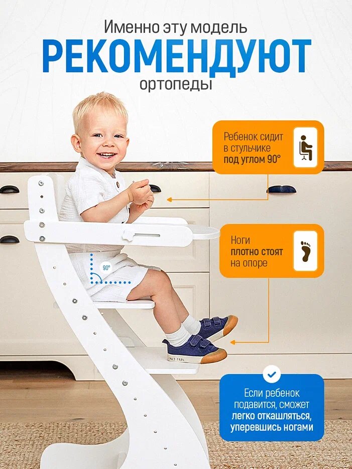 Детский регулируемый стул растет вместе с вашим малышом. Этот растущий стул-трансформер должен быть в каждой детской комнате девочки и мальчика, ведь он универсален, удобен и практичен. Идеален для детей любого возраста, так как высота сидения, подножка легко регулируются при необходимости. Может стать комфортным креслом для дошколят, а также использоваться на кухне как детский кухонный стул. Дети смогут самостоятельно взбираться на стульчик. Стул для уроков для школьника во время письменных занятий - такой ученический ростовой стул поможет сформировать правильную осанку и избежать сколиоза. Для детей рекомендуется использовать стульчик начиная с 1 года и до 9 лет, при росте до 130 см. Взрослые также могут использовать эту мебель, так как конструкция очень надежна и выдерживает до 100 кг. Максимальная высота сиденья - 57,5 см, а глубина – 24 см. Такой школьный стул станет полезным подарком для ребенка любого возраста! Продукция сертифицирована и изготовлена из лучших материалов. Деревянный ортопедический стул вырастайка для девочек и для мальчиков - то, что нужно вам и вашему ребенку!