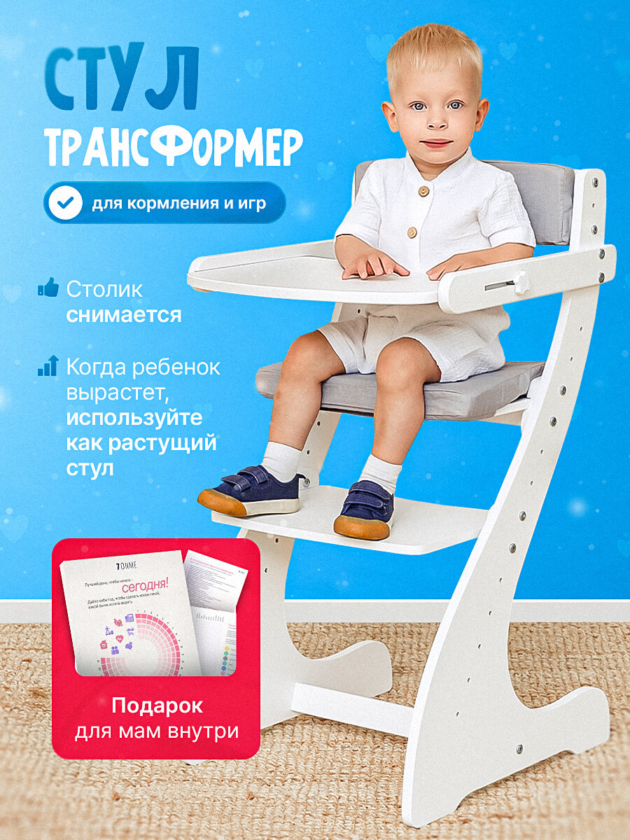 Купить Растущий стул детский для кормления Трансформер белый с серыми подушками с доставкой по всей России. Растущий стул детский для кормления Трансформер белый с серыми подушками: сравнение цен, характеристики, фото, актуальное наличие и цены.