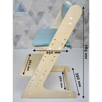 Размер сиденья и подножки: 250x360 мм. Все детали тщательно отшлифованы и имеют гладкую поверхность. Острые углы отсутствуют, края закруглены. Материалы, использованные в стуле, полностью безопасны для детей. Фанера не покрыта лаком, что дает возможность родителям самостоятельно выбрать покрытие.