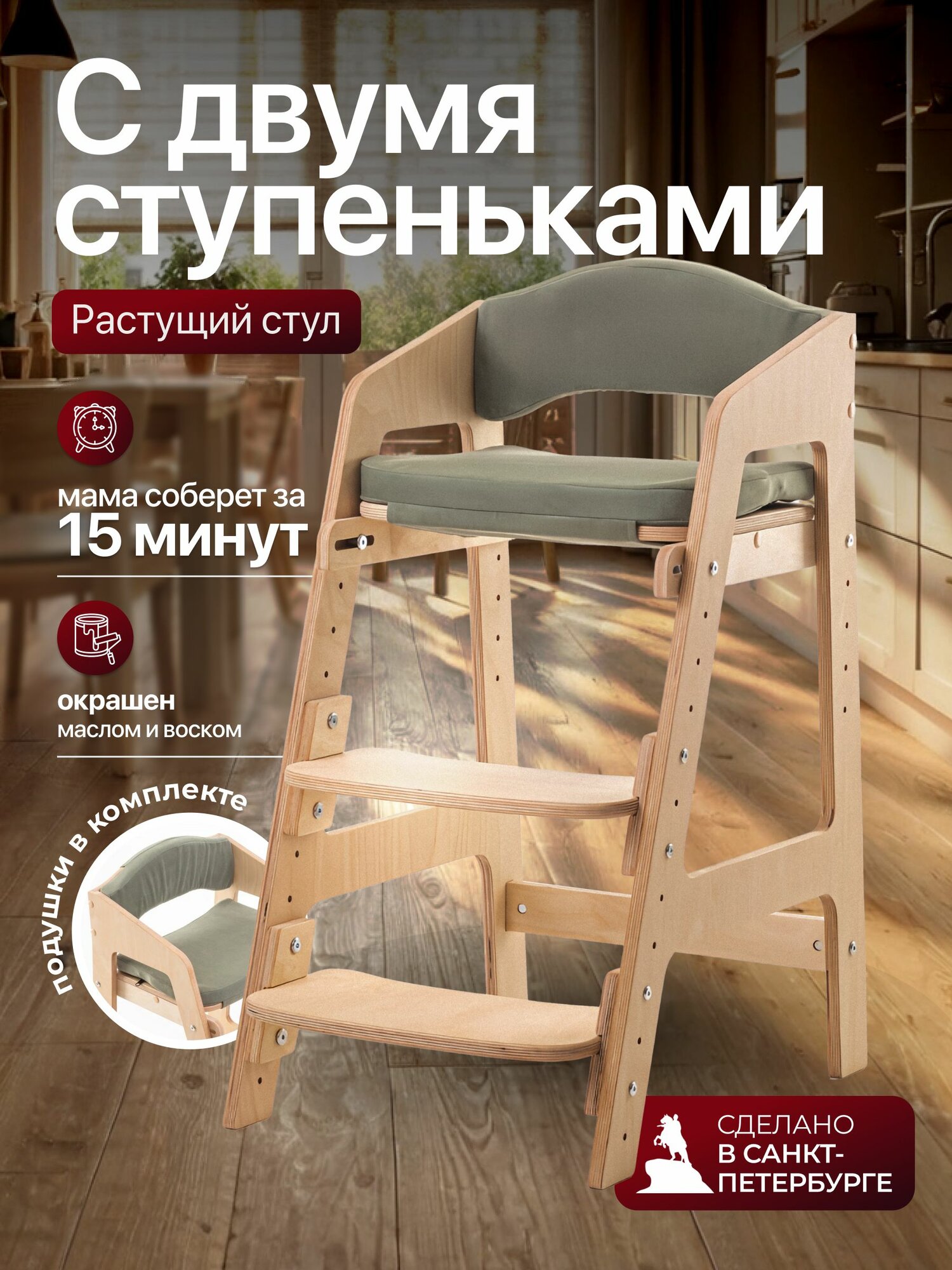 Растущий стул для детей. Окрашен. С подушками.: сравнение цен, характеристики, фото, актуальное наличие и цены.
