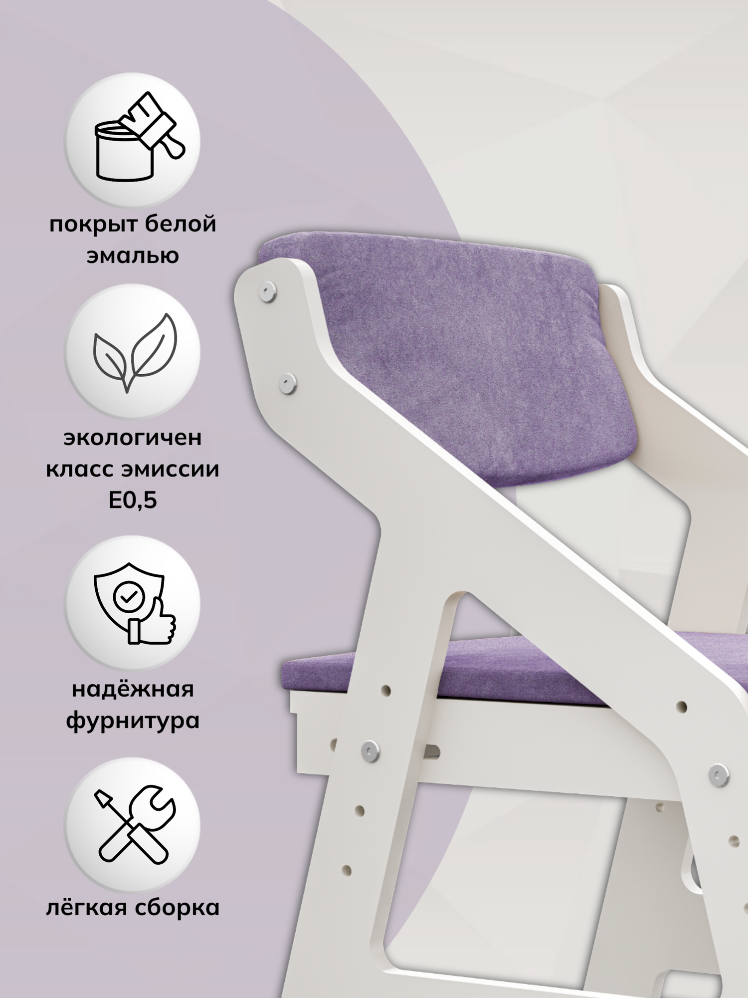 Купить Растущий стул «Олива» белый, с мягкими подушками сиреневого цвета с доставкой по всей России. Растущий стул «Олива» белый, с мягкими подушками сиреневого цвета: сравнение цен, характеристики, фото, актуальное наличие и цены.